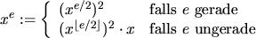 Aufwand: O (log e), d.h. proportional zur Anzahl der Dezimalstellen.